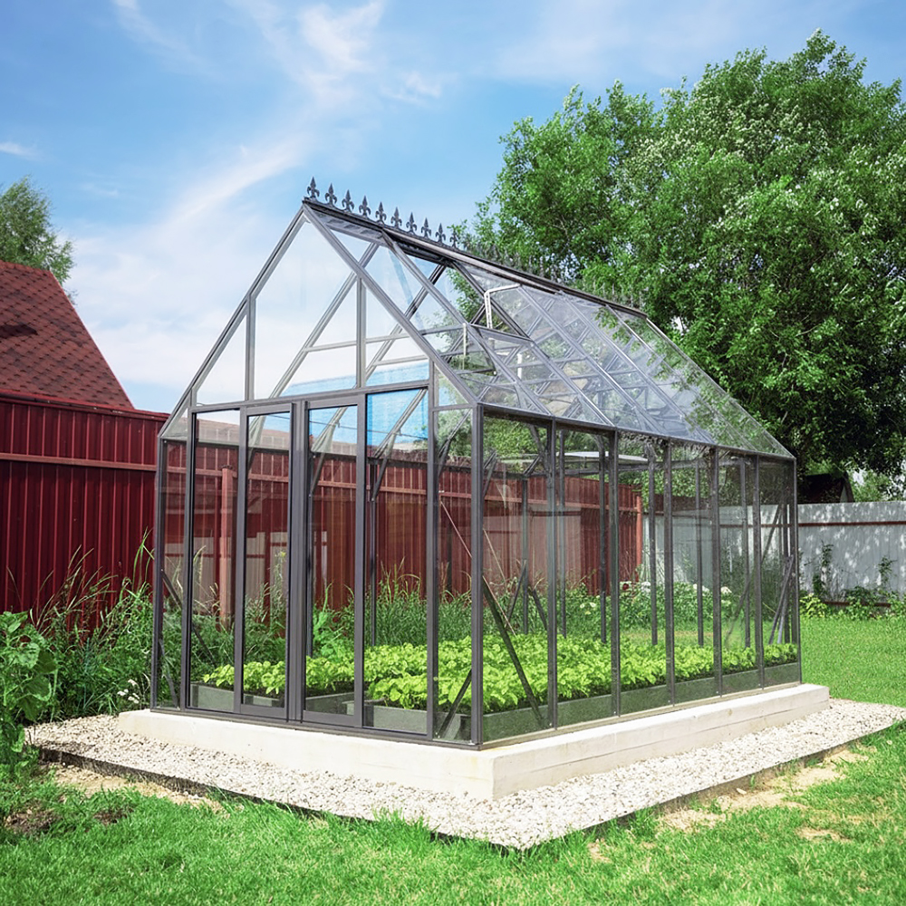 Модель ESTRELLA – это теплица с увеличенной высотой. Такая конфигурация стала возможна за счёт уменьшения угла в коньке конструкции. Благодаря такому углу, верхний скат теплицы стал более приспособлен для ускоренного самостоятельного схода снега, который даже не успевает скапливаться на крыше.