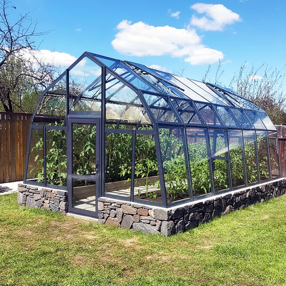 Стеклянная теплица ЮГРА с увеличенной шириной и высотой, по сравнению с типовой садовой конструкцией. Размеры модели предоставляют владельцу достаточно объемное пространство для комфортной работы, а продуманная форма вентиляционных форточек эффективно справляется с отведением горячего воздуха, повышая урожайность.